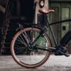 Prenez de l'avance avec un E-Bike. Même sur votre temps. Ses teintes marron et son guidon – tourné au choix vers le bas en version sportive ou vers le haut en version confort – confèrent à ce vélo une élégance indémodable.